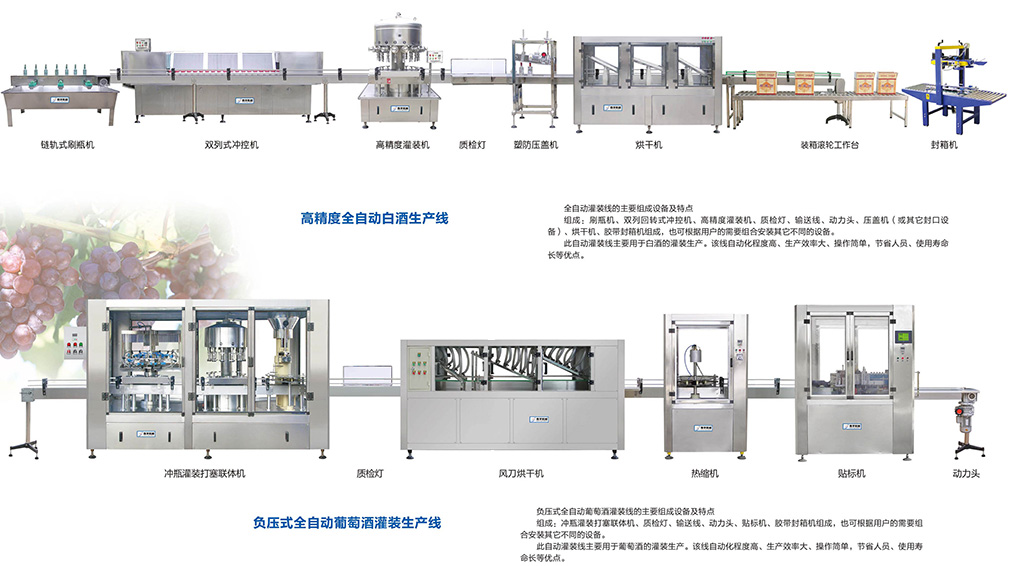 SYGZ-24-16-1型沖瓶灌裝打塞三聯機 三聯體機主要是為葡萄酒、果酒灌裝而設計的設備,本設備是將翻轉沖瓶機、負壓灌裝機、打塞機有 機組合為一體,設備結構緊湊,節省安裝空間 ...